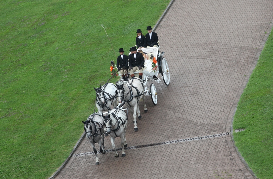 Nel giorno del matrimonio potremmo accompagnare la sposa fino all'ingresso della chiesa e successivamente gli sposi verso il luogo scelto per il rinfresco; le emozioni provate in quei momenti saranno uniche ed indescrivibili, le bellissime foto che vi immortaleranno in quegli attimi vi aiuteranno a ricordare nel tempo il sogno vissuto nel giorno più importante della vostra vita.